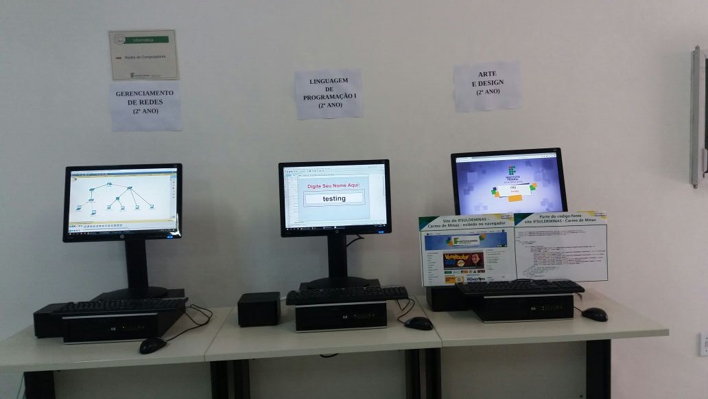 No âmbito do curso técnico em Informática Integrado ao Ensino Médio, os alunos tiveram a oportunidade de apresentar uma parte dos conteúdos que são trabalhados em sala de aula. Em termos de espaço físico e disposição das bancadas, o laboratório de informática assumiu uma configuração diferente para receber os visitantes. Foi possível apreciar os trabalhos relacionados às disciplinas: Arte e Design (1º e 2º ano), Linguagem de Programação I, Redes de Computadores, Lógica de Programação, Fundamentos de Informática (Hardware) e Banco de Dados.