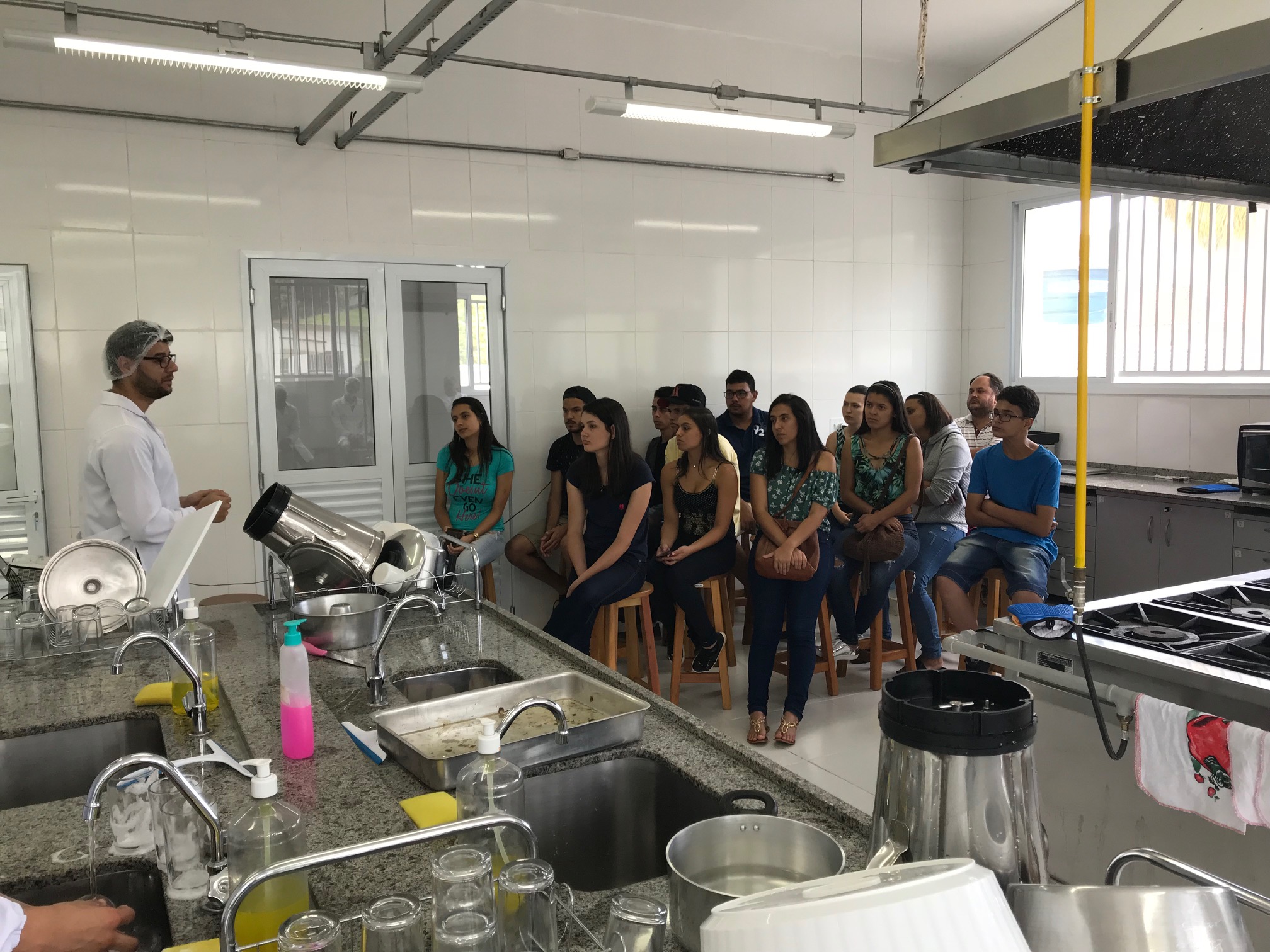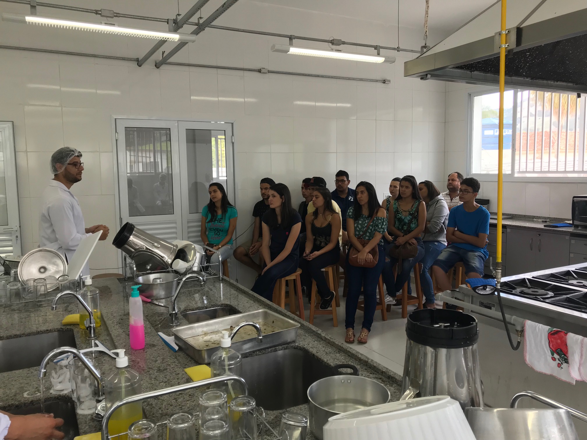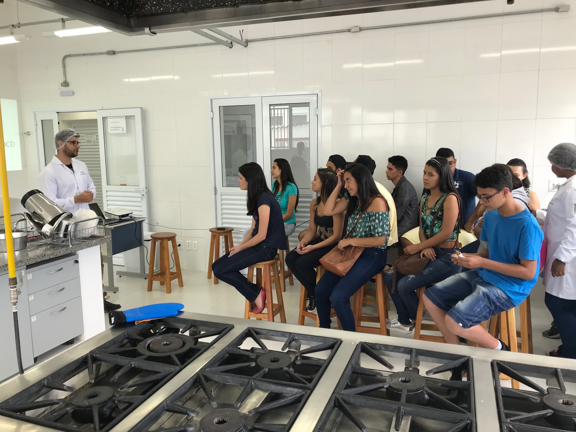 Os alunos do Módulo IV do Curso Técnico em Alimentos apresentaram seus conhecimentos nas oficinas de fabricação de alimentos. Um bolo produzido com arroz (sem glúten) e um quibe enriquecido com legumes (abobrinha e cenoura) serviram de base para que o público recebesse informações sobre alimentos alergênicos, desenvolvimento de novos produtos, processos de fabricação em batelada e contínuos, técnicas de conservação e uso de aditivos, critérios higiênico-sanitários na produção, contaminações microbiológicas e aspectos de rotulagem. Além disso, os alunos responderam várias perguntas dos convidados e finalizaram a demonstração de sua profissão servindo os produtos para que todos degustassem.
