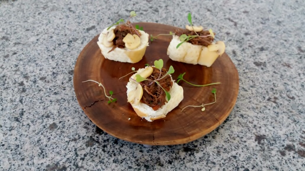 Pratos doces e salgados contendo café como ingrediente foram ricamente apresentados por Gabriel Freitas, que preparou para as Quitandeiras: filé de frango flambado com batatas a provençal, molho jus e confit de minitomates; patê de café em canapés com presunto de parma e no pão de queijo; arroz doce com café; ragu de carne bovina com molho de café e aligot de batatas inglesa e baroa; macarrão gravatinha com molho de café; naked cake com creme de café; rosca com ganache de café e com caramelo de café com uvas passas; pão de café recheado com muçarela e tomate. Confira as fotos!