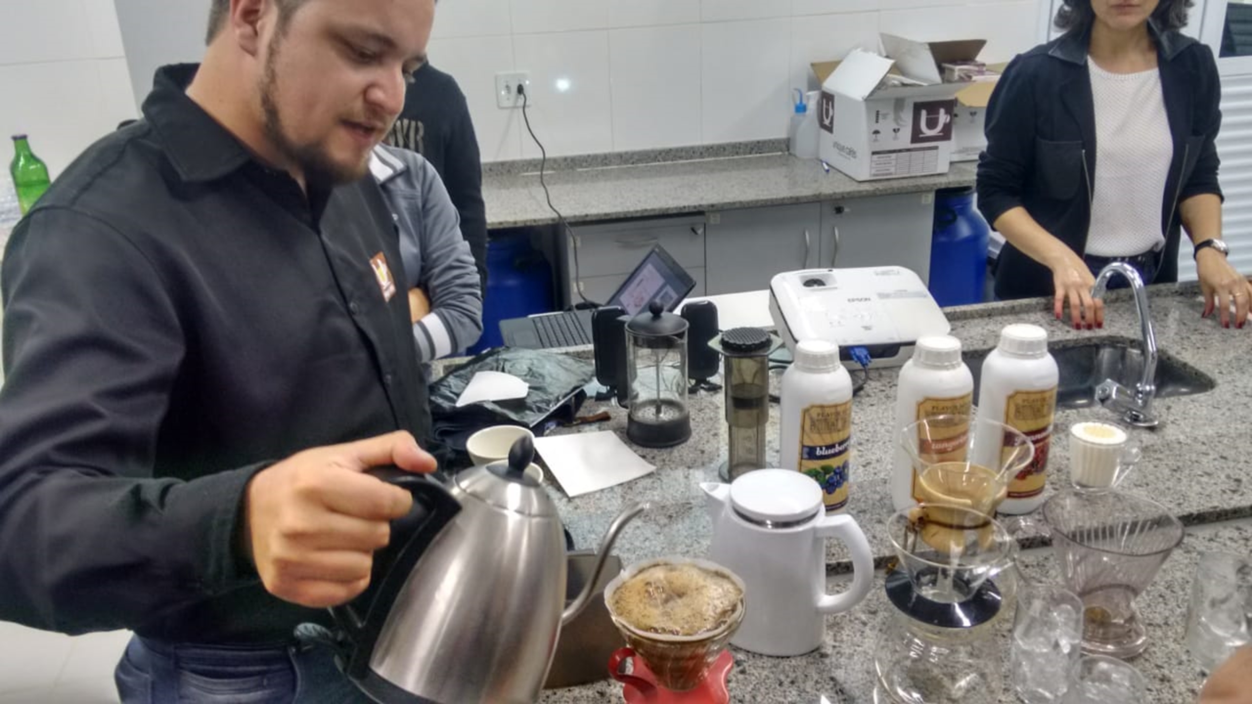 Gabriel Guimarães demonstrou que o barista é o alquimista do preparo, mas precisa entender do processo produtivo que interfere na qualidade até o café chegar na mão dele: os tratos culturais e pós-colheita, o processo de torra, de prova, a análise clínica do café. Atuando como barista há mais de sete anos, ele estimulou os alunos interessados a buscarem uma qualificação, afirmando que ”-desde quando eu comecei, enxergo que o mercado deu uma guinada, vem evoluindo; as pessoas estão se interessando mais por cafés melhores e nosso papel como barista é trazer mais educação para a xícara. Por isso, estou muito satisfeito em poder participar do EduCafé”.
