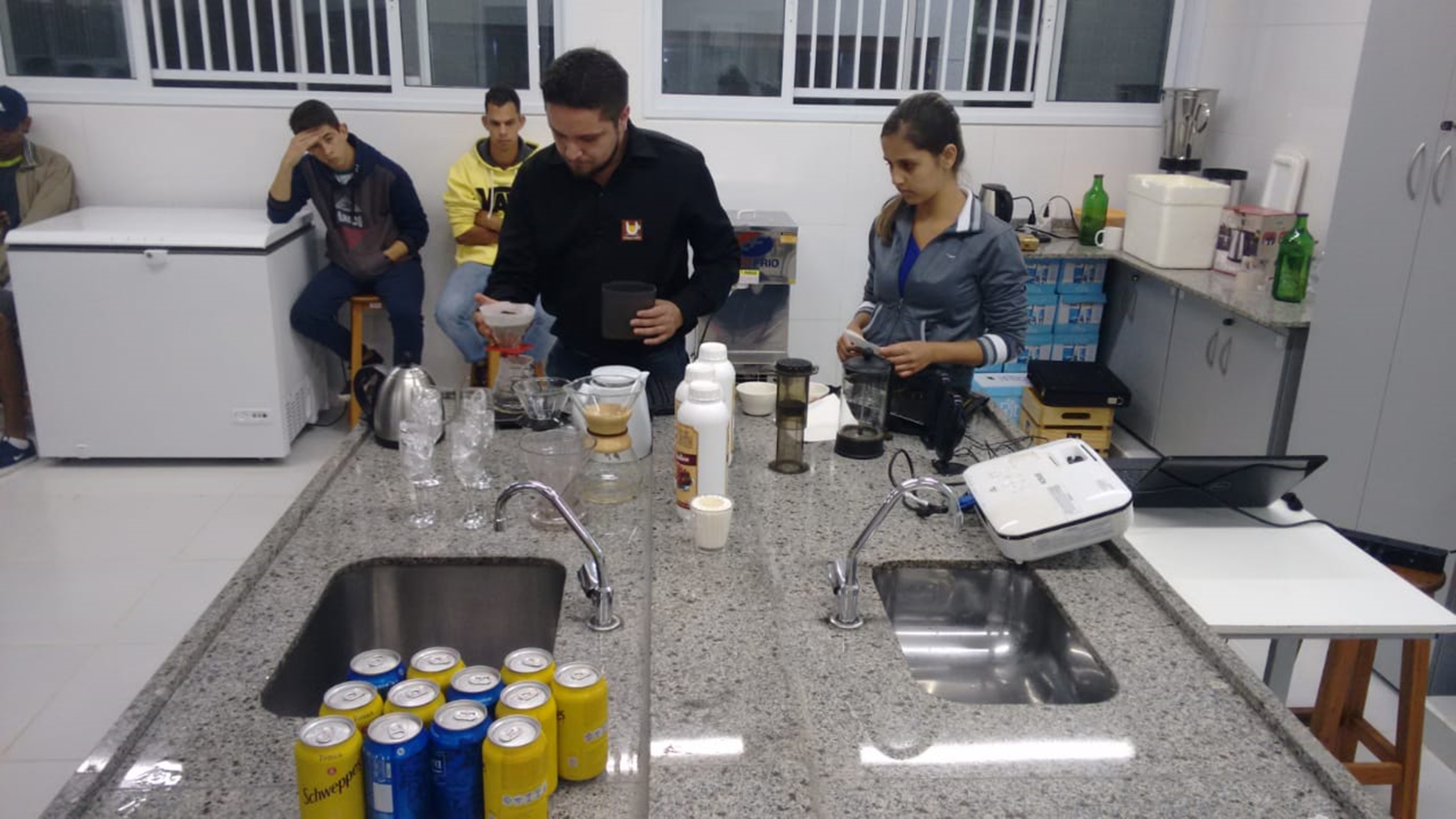 Os equipamentos, utensílios diversificados e técnicas diversas para preparar o café foram demonstradas na atividade teórico-prática que aconteceu no Laboratório de Processamento de Alimentos do Campus Avançado Carmo de Minas, do IFSULDEMINAS. Gabriel apresentou os vários campos de atuação do barista, desde o preparo do café até a mixologia, destacando também os diferentes campeonatos que este profissional pode participar. Foi abordado o surgimento do café no Brasil, a caixa didática com as fases do café até a torra, os métodos do preparo de café coado (V60, Kalita, Clever, Aero press, French press, Chemex, Soft brew), o funcionamento das máquinas moinho e de espresso, a extração de expressos.