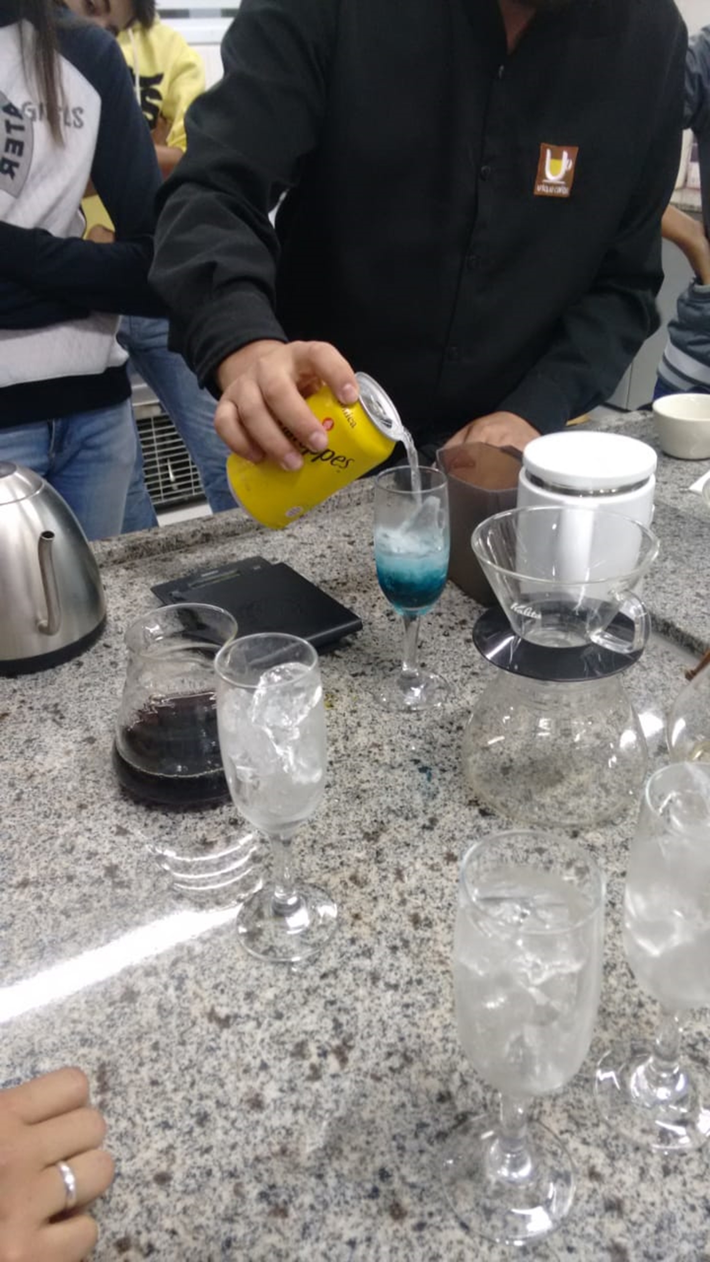 A demonstração prática não poderia faltar! Gabriel Guimarães ensinou os participantes a prepararem um café coado e o drink Espresso Tônica, uma refrescante bebida com café, água tônica, gelo e xarope de frutas. Cada um pôde fazer a sua mistura e todos celebraram o café!