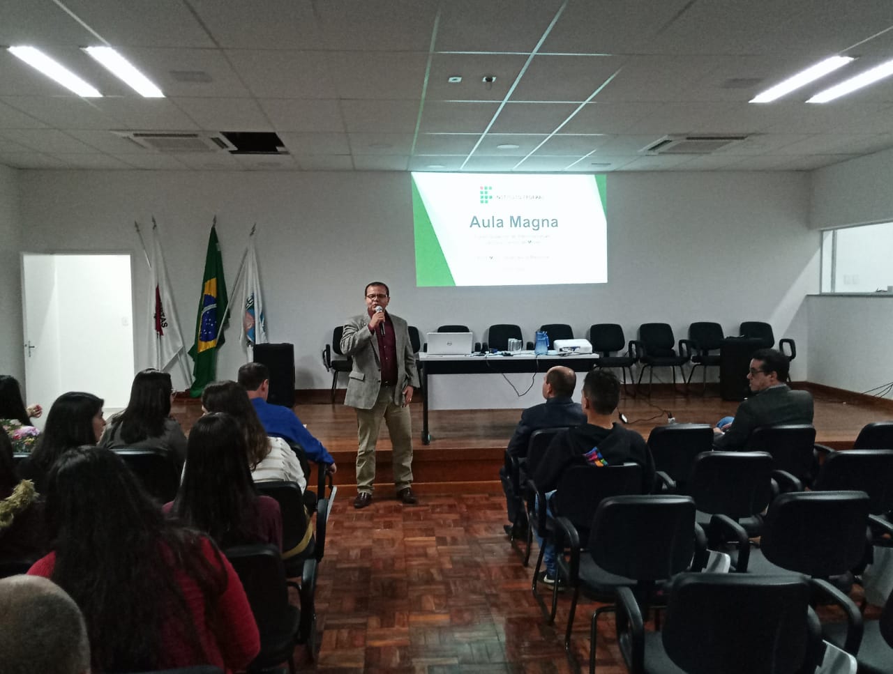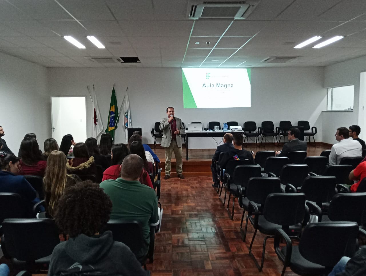 As boas-vindas foram realizadas pelo Diretor-Geral Pró-tempore do Instituto Federal do Sul de Minas (IFSULDEMINAS), campus avançado Carmo de Minas, professor Dr. João Olympio de Araújo Neto, que destacou a importância de implementar cursos de graduação no campus. Em seguida, o coordenador do curso superior em administração, professor Thiago Alves de Souza, deu as boas-vindas aos alunos. A aula magna denominada “Administração: a arte de gerar resultados” foi realizada pelo representante do Reitor, professor Marcelo Bregagnoli, o Pró-Reitor de Extensão, professor Cleber Ávila Barbosa.