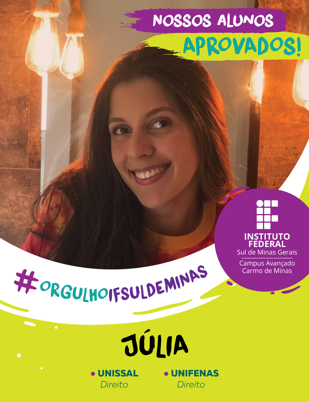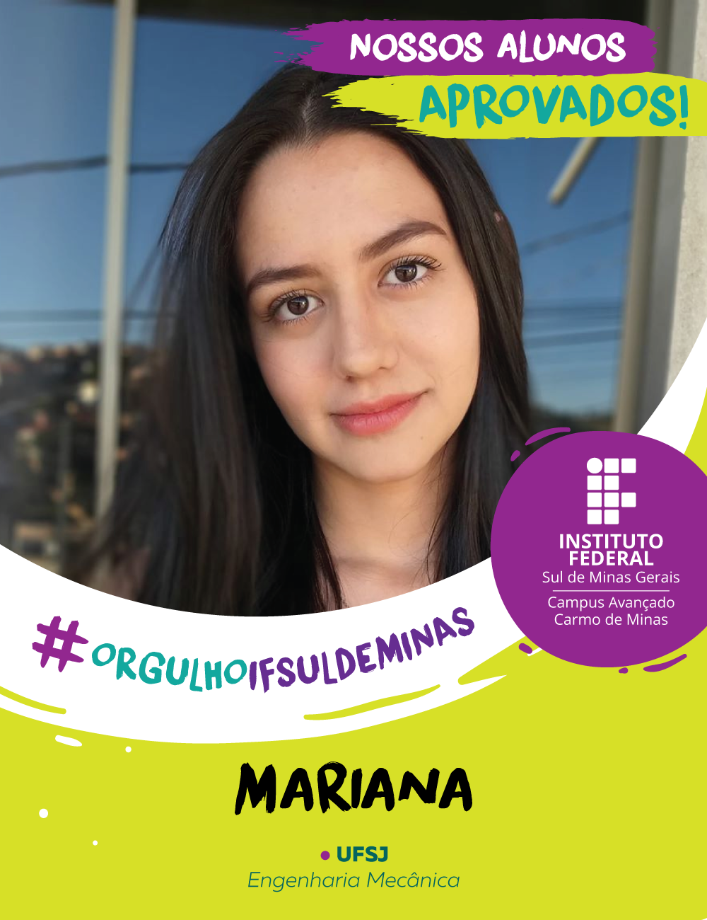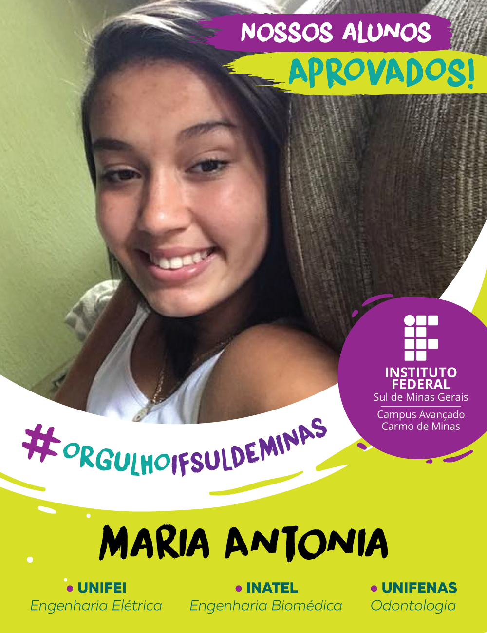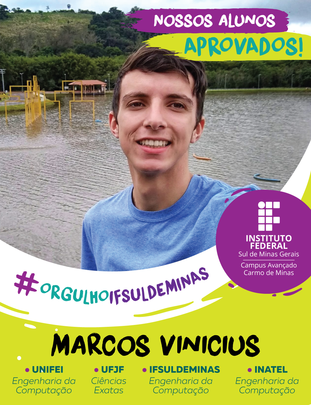 O campus Avançado Carmo de Minas parabeniza os alunos aprovados no Ensino Superior e deseja muito sucesso e realizações nesta nova etapa.