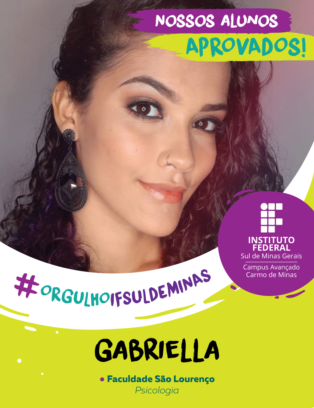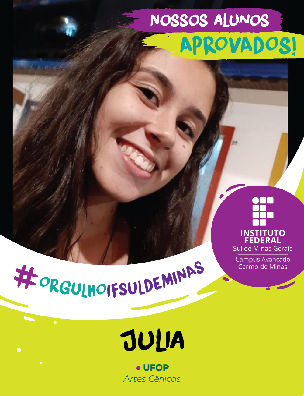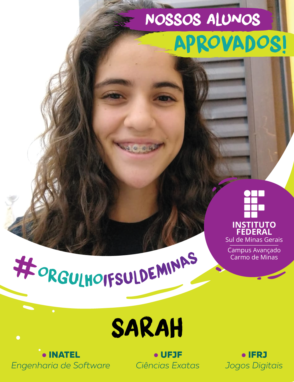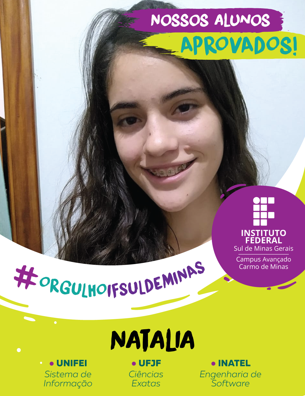 O campus Avançado Carmo de Minas parabeniza os alunos aprovados no Ensino Superior e deseja muito sucesso e realizações nesta nova etapa.