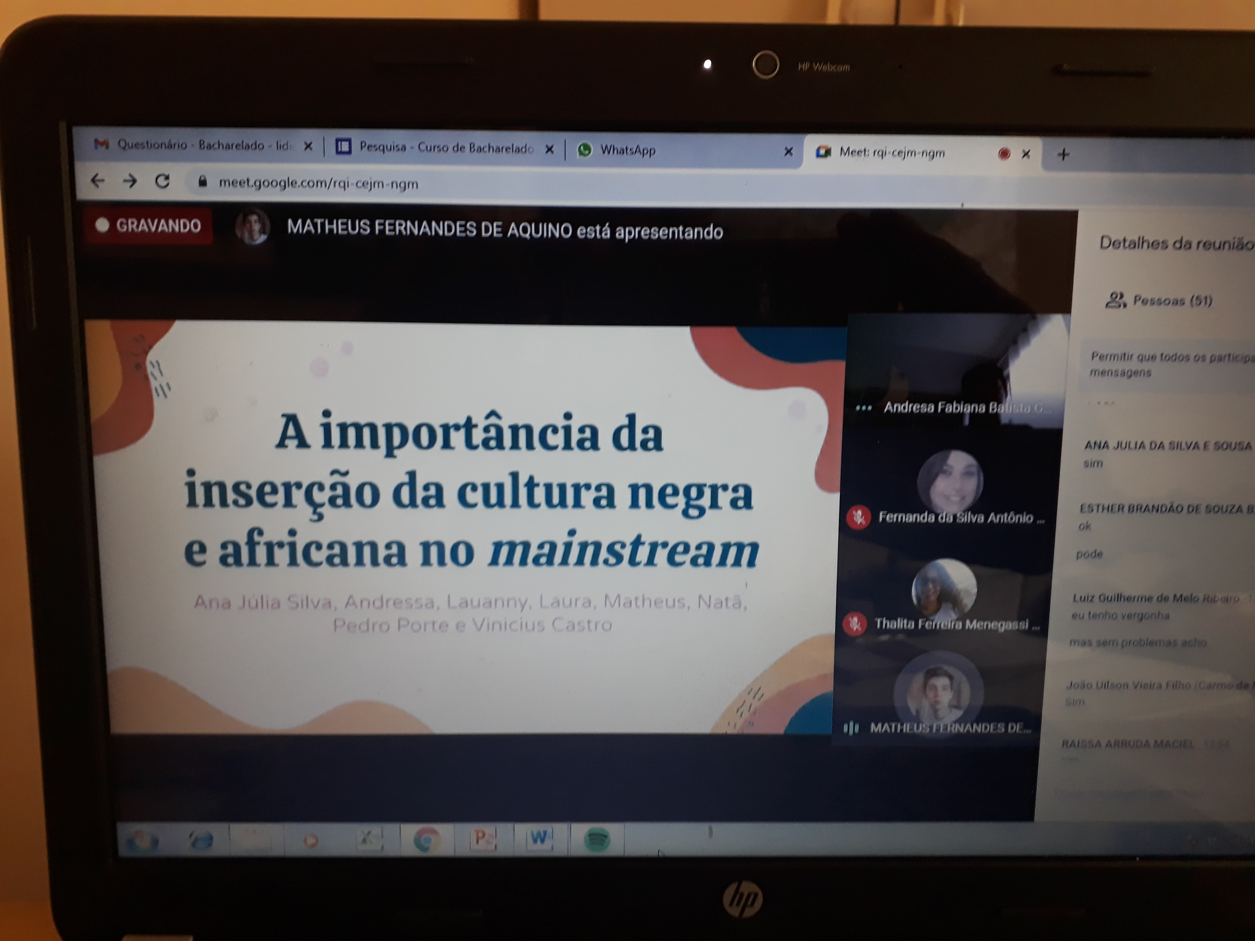 Dhawanny Gabrielly de Souza Morais (3º ano de Informática Integrado): “Participar desse evento tão importante foi, antes de tudo, super emocionante. Poder compartilhar conhecimento, vivências e desejo de um mundo cada vez mais antirracista. É sempre bom compartilhar ideias que melhoram nossa convivência e fazer isso com pessoas tão interessadas nessa causa é extremamente prazeroso”.