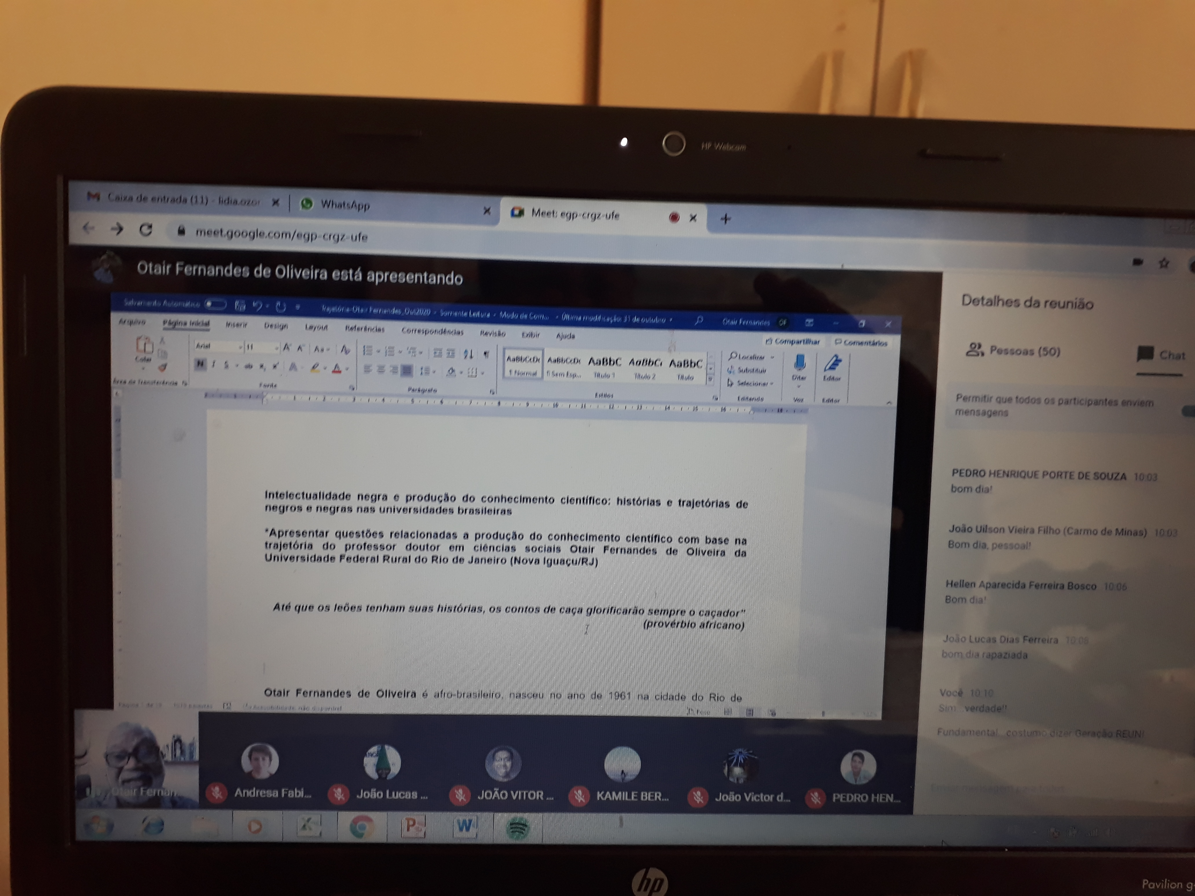 Pedro Henrique Porte de Souza (3º ano de Informática Integrado): “O evento foi extremamente enriquecedor para minha formação como cidadão, na medida em que me tocou de diferentes formas e me fez perceber a minha obrigação, como pessoa branca, de agregar na luta antirracista”.
