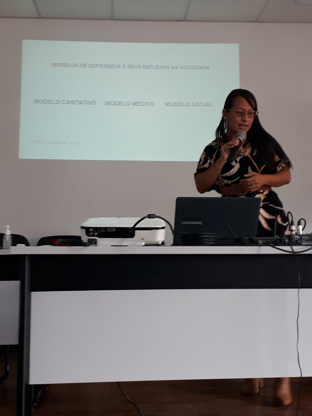 A professora Simone fez uma abordagem sobre modelos de deficiência e os seus reflexos na sociedade nos diversos períodos da história. Para falar sobre esses modelos e o conceito de deficiência, a professora Simone citou a professora aposentada da UFRJ, Izabel Maior.