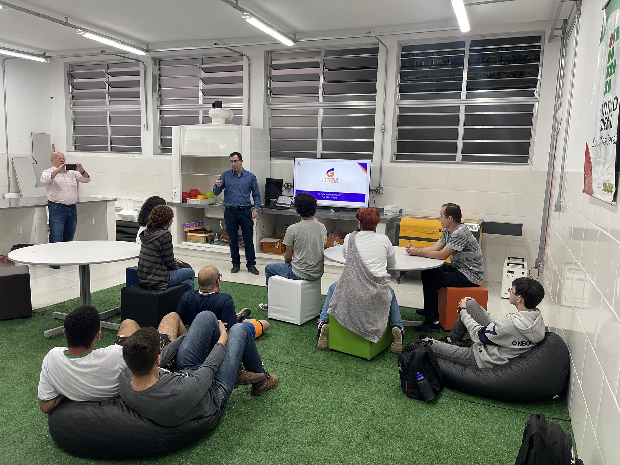 No dia 05/05/2022, o professor Aldyr Amaro da Costa Nunes realizou uma palestra com o tema “Da Ideia a Prototipação” aos alunos que compõem a equipe do Espaço Maker do câmpus avançado Carmo de Minas. O professor Aldyr é formado em Sistemas de Informação, pós-graduado em Redes de Computadores e atua profissionalmente na área de Tecnologia da Informação. Desenvolve ações nas áreas de Robótica com Arduino, Automação, Impressão 3D e CNC. O professor Aldyr possui vasta experiência nessas áreas e explanou sobre aspectos primordiais (técnicos e comportamentais) para os alunos que estão participando do Projeto Espaço Maker.