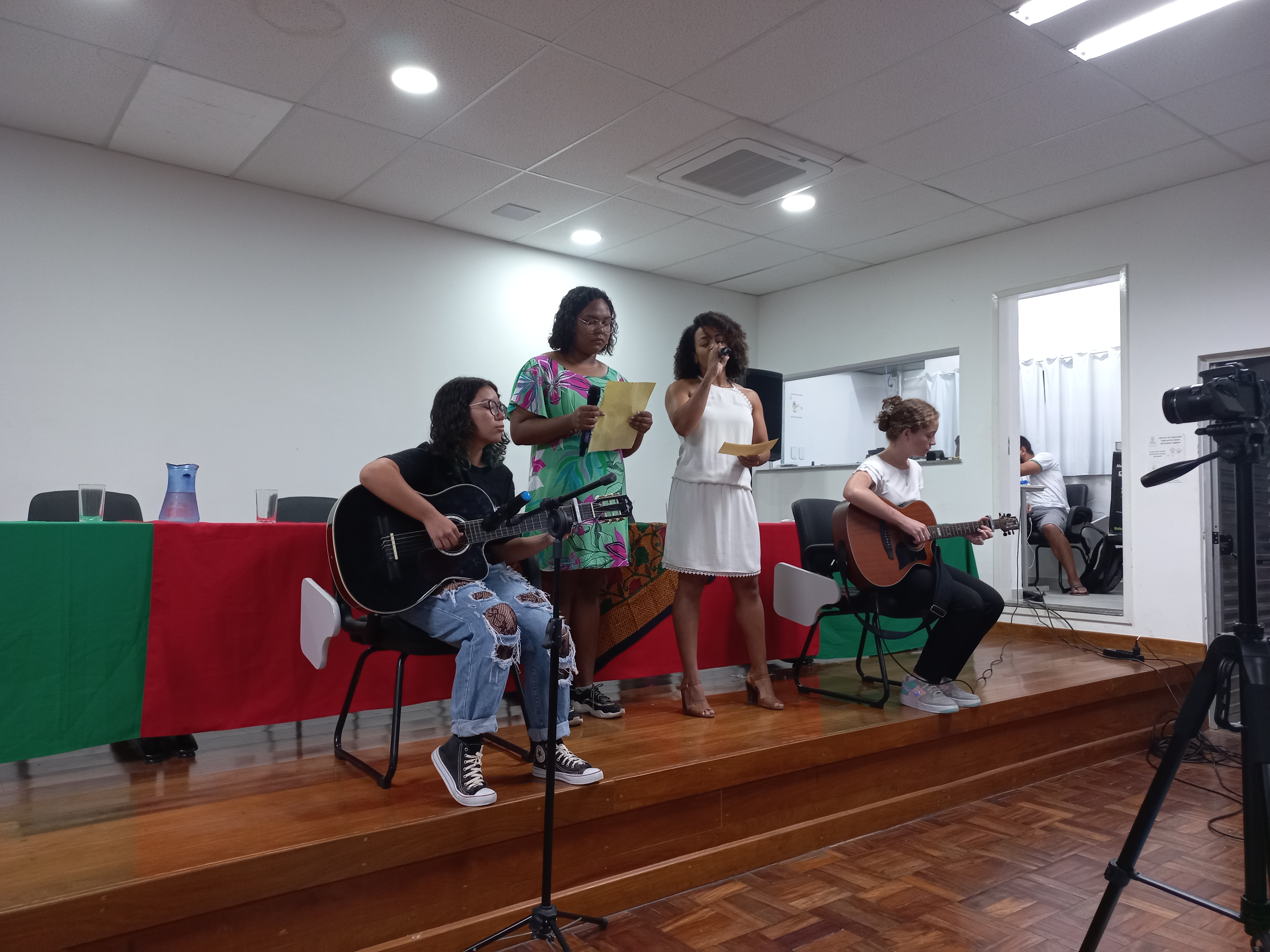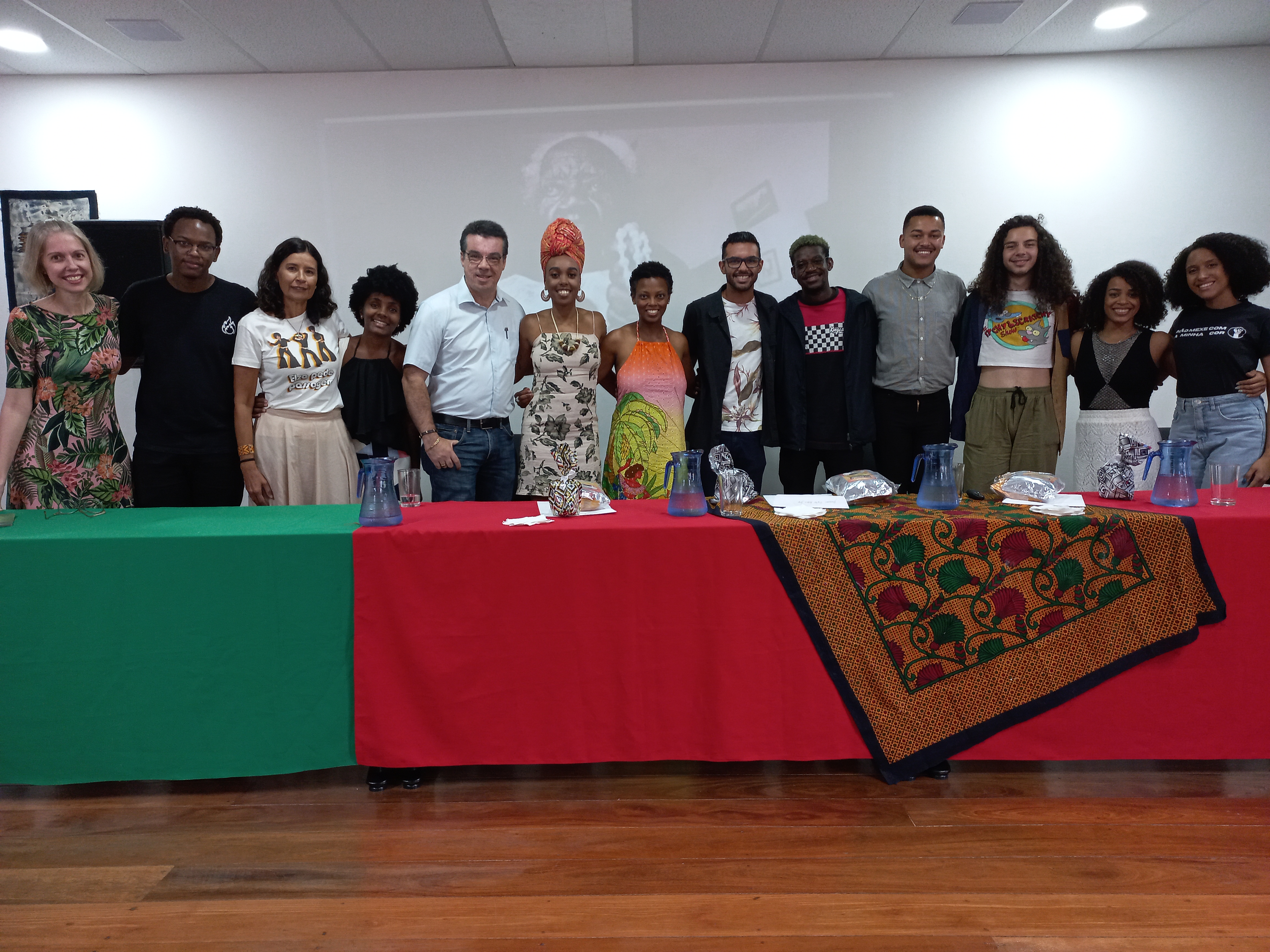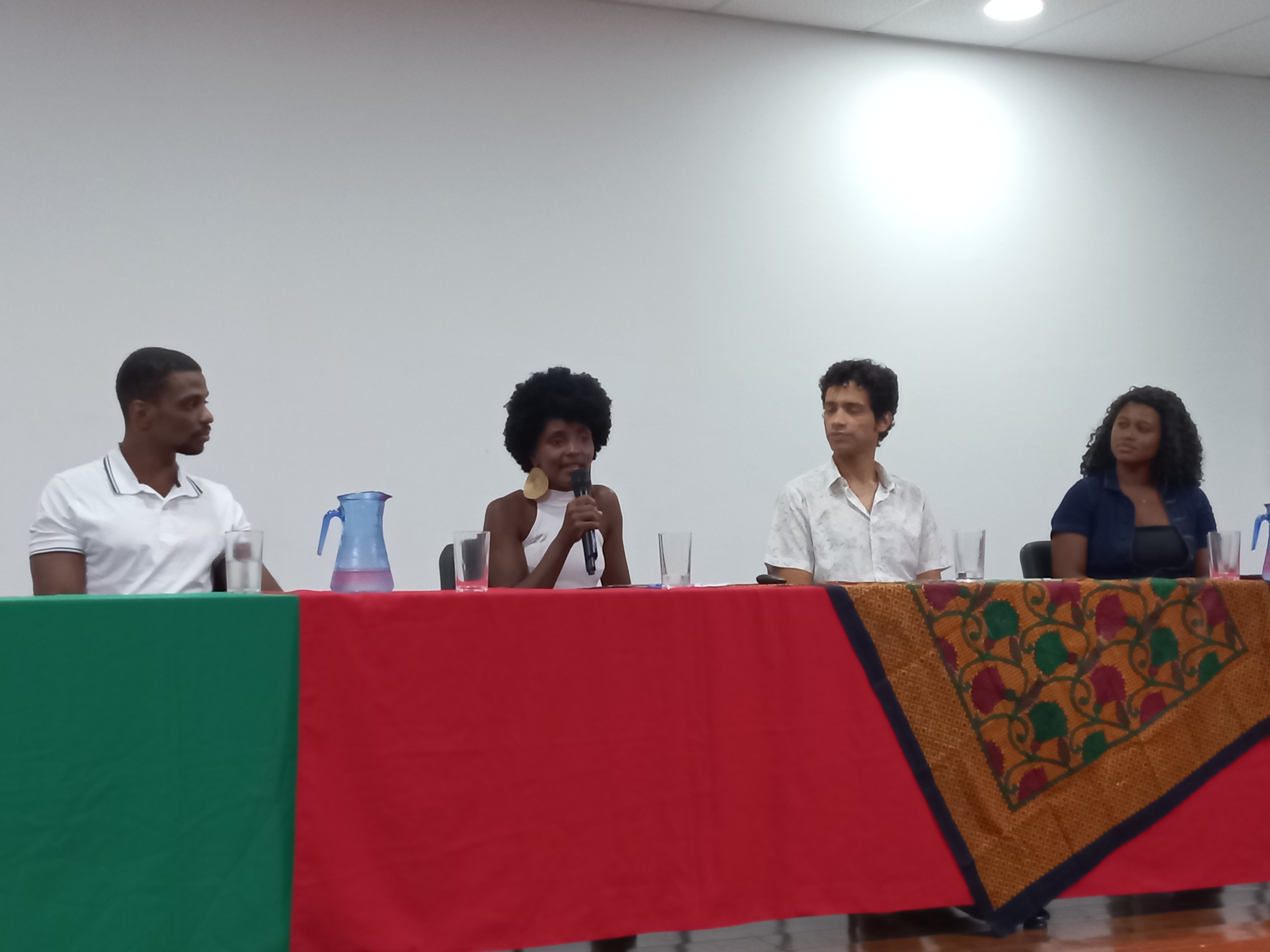 A mesa-redonda Trajetórias Negras: Representatividade Importa!, ocorrida no dia 23 de novembro, contou com a participação da psicóloga Daiana Candida, do médico Leonardo Rodrigues, da costureira Amanda Gabriela da Conceição Fernandes e do advogado Gabriel Casimiro Severino de Souza. Cada participante compartilhou vivências que marcaram sua trajetória, o que emocionou o público (composto de estudantes e servidores) e propiciou uma reflexão sobre como o racismo estrutural da sociedade brasileira atinge as vidas negras, a falta de representatividade negra nas diversas esferas sociais e a importância da ancestralidade consubstanciada no apoio familiar que lhes fortaleceu na luta antirracista e em suas realizações individuais e coletivas.